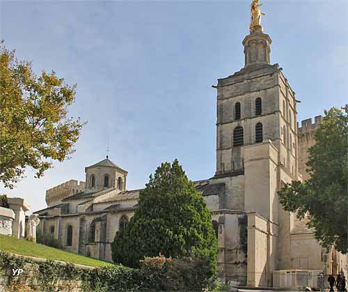 La cathédrale Notre-Dame des Doms (ou Notre-Dame de Tout-Pouvoir) a été édifiée en 1150 dans le style roman provençal sur un plan de basilique romaine. Elle jouxte le Palais des Papes. Construite sur le rocher des Doms et surmontée d'une statue de la Vierge dorée, elle domine toute la contrée.