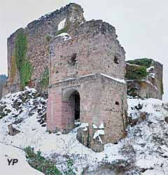 ![]() Le front sud du Hugstein avec son donjon cylindrique. La ruine a servi de carrière jusqu'à la fin du XIXe siècle (doc. JMN - Pro Hugstein) | ![]() La ruine du Hugstein en hiver (doc. FM - Pro Hugstein) |
