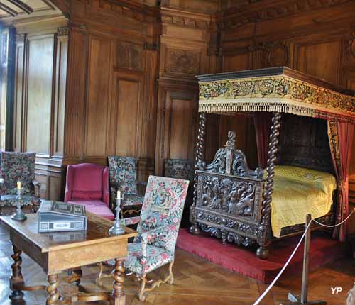 -Dans la tour, de grandes pièces aménagées au 17 ème siècle avec boiseries et mobiliers, telles la bibliothèque ou la chambre du parlementaire Pierre Fisjean.