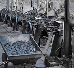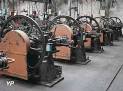 ![]() Salle des machines et poêle à charbon (doc. Clouterie Rivierre) | ![]() Machines à clous (doc. Clouterie Rivierre) |