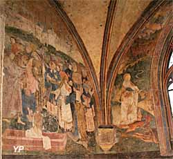 ![]() Peinture murale de la chapelle de Saint-Léger (XVe siècle) (doc. Yalta Production) | ![]() Peinture murale de la chapelle de Saint-Léger (XVe siècle) (doc. Yalta Production) |