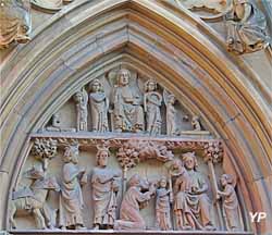 ![]() Le Christ trônant entouré d’anges portant les instruments de sa passion et, au dessous, l'adoration des mages (doc. Yalta Production) | ![]() Collégiale Saint-Martin (doc. Yalta Production) |