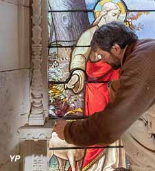 Présentation au public des différentes restaurations qui viennent de se terminer dans l'église St Pierre de Courcerault sous forme d'ateliers animés par les artisans eux-mêmes :