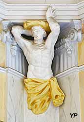 La décoration intérieure, oeuvre de Roubieu, est consituée de gypseries représentant la vie aux champs.
