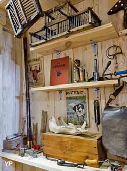Atelier de collection d'un passionné présentant les outils des métiers d'autrefois tels que le maréchal ferrant, le vigneron, le tonnelier, le sabotier, le cordonnier, le menuisier, l'ébéniste , l'horloger-bijoutier ...