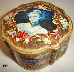 ![]() Boîte de poudre de riz Frimousse d'or (1929) (doc. Musée départemental du Cartonnage et de l'Imprimerie) | ![]() Boîte de poudre de riz Manon Lescaut (doc. Musée départemental du Cartonnage et de l'Imprimerie) |