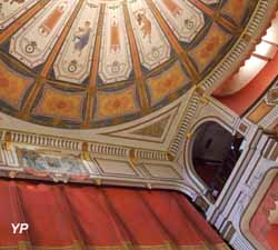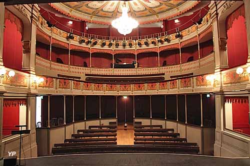 La salle de spectacle " à l'italienne " a conservé tous ses décors : plafond rayonnant illustré de muses et de bacchantes, rideau de fer, loges d'avant-scène... La scène a conservé l'essentiel de sa machinerie d'origine.